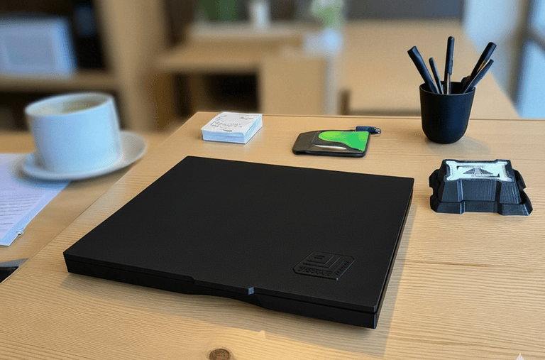 Possui uma base para protejer a sua mesa de respingos de tinta que realçar o conjunto.
